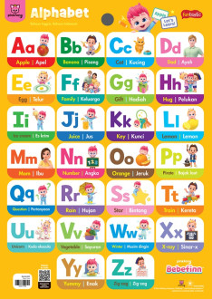 Belajar dengan poster penuh warna dan karakter yang menggemaskan dari Bebefinn! Berisi 2 poster untuk mempelajari alfabet dan huruf abjad