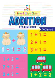 Smart Wipe Clean: Addition merupakan kumpulan kartu yang berisikan soal-soal penjumlahan dalam matematika. Pada bagian depan terdapat konsep berhitung yang diwakili benda-benda, sehingga anak dapat mempeajari konsep dasar penjumlahan. Lalu pada halaman belakang terdapat soal-soal yang dapat dijawab sendiri oleh si anak.