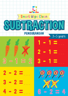 Smart Wipe Clean: Subtraction merupakan kumpulan kartu yang berisikan soal-soal pengurangan dalam matematika. Pada bagian depan terdapat konsep berhitung yang diwakili benda-benda, sehingga anak dapat mempeajari konsep dasar pengurangan. Lalu pada halaman belakang terdapat soal-soal yang dapat dijawab sendiri oleh si anak.