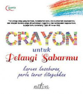 Temukan crayon warna-warni di buku ini, yang dapat mengajak pembacanya melukis bersama pelangi kesabaran. Meredakan gejolak berontak. Mengisi jeda antara harapan dan kenyataan. Agar bukan hanya dapat menerima ketetapan Tuhan, tapi juga mendapat kebahagiaan.