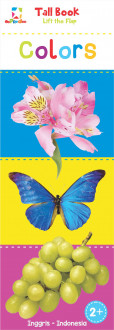 Buku berukuran tinggi dan lembar halaman mengajak anak untuk menemukan ada apa di balik halaman saat dibuka. Gambar realis objek, binatang, sayur, dan buah mengajak anak untuk mengenal kosa kata baru yang dapat digunakan sehari-hari.