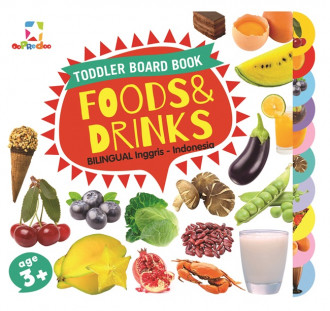 Toddler Board Book: Foods & Drinks merupakan boardbook yang berisikan puluhan kata-kata baru untuk si kecil. Ia dapat memperluas wawasannya dengan mempelajari berbagai makanan dan minuman dalam board book ini. Boardbook ini juga dilengkapi dengan bahasa Inggris.