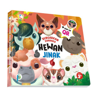 Ayo, mengenal hewan jinak dan suaranya! Setiap halaman membawa anak-anak ke dunia Hewan jinak yang ada disekitarmu Meongg! Gukk...guk! Kalian pasti tahu itu suara hewan apa. Apakah kalian juga tahu suara domba, kuda, dan sapi? Ayo dengarkan suara binatang kesayanganmu dengan scan QR yang ada di tiap halaman. Gambar binatang dalam buku ini juga mempunyai mulut yang bisa dibuka tutup (pop up) dan bisa kalian mainkan.