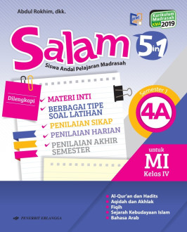 Buku Salam 5 in 1 disusun berdasarkan Kurikulum Madrasah KMA No. 183 Tahun 2019. Buku ini praktis dan efisien karena memuat lima mata pelajaran agama, yaitu Al-Qur'an dan Hadits, Aqidah dan Akhlak, Fiqih, Sejarah Kebudayaan Islam, dan Bahasa Arab.