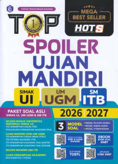 Persaingan memasuki PTN terbaik di negeri ini semakin sulit. Perbandingan antara kursi kosong setiap PTN dengan peminat kian terlihat jomplang. Setiap jalur penerimaan mahasiswa baru pasti akan diburu oleh calon mahasiswa PTN yang diminati, tak terkecuali jalur seleksi mandiri atau jalur tes yang diadakan oleh masing-masing PTN Untuk itu, buku TOP SPOILER UJIAN MANDIRI 2026/2027 merupakan solusi yang tepat untuk Anda yang ingin kuliah di kampus impian (UI, UGM, ataupun ITB).