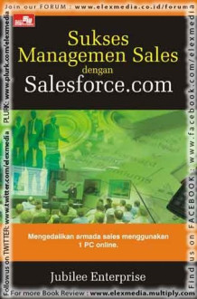ika Anda memiliki banyak armada sales, baik yang tinggal di kantor pusat maupun yang tersebar di banyak tempat (dalam negeri maupun luar negeri), maka Anda membutuhkan buku ini. Terlebih jika Anda ingin mengarsipkan semua diskusi, data-data konsumen dan prospek, nilai penjualan, penjadwalan event, dan semua hal yang terkait dengan penjualan dan pemasaran perusahaan Anda. Situs Salesforce.Com yang dikupas habis di buku ini merupakan sebuah situs yang dapat Anda pakai untuk memuluskan semua rencana pemasaran dan penjualan Anda. Berikut yang bisa Anda lakukan dengan situs Salesforce.Com: - Mencatat kontak yang berkaitan dengan konsumen, pelanggan, prospek, sampai mitra-mitra bisnis Anda. - Membuat akun-akun yang berkaitan dengan sales Anda, meliputi akun analis, competitor, customer, inventor, partner, reseller, dan sebagainya. - Membuat event atau acara-acara yang digelar untuk mempromosikan serta menjual produk dan jasa Anda. - Membuat daftar kampanye yang akan diselenggarakan dalam waktu singkat ataupun dalam jangka panjang. - Mendata semua opportunity yang mungkin akan didapat dalam waktu dekat. - Menambahkan dokumen-dokumen yang penting untuk transaksi bisnis. - Dan lain sebagainya. Dengan Salesforce.Com, tugas Anda tidak hanya jauh lebih praktis dan ekonomis, tapi arsip-arsip perusahaan yang berkaitan dengan sales dan pemasaran akan menjadi jauh lebih rapi dan terdokumentasi dengan baik. Akhir kata, jika mau sukses, silakan baca buku ini!
